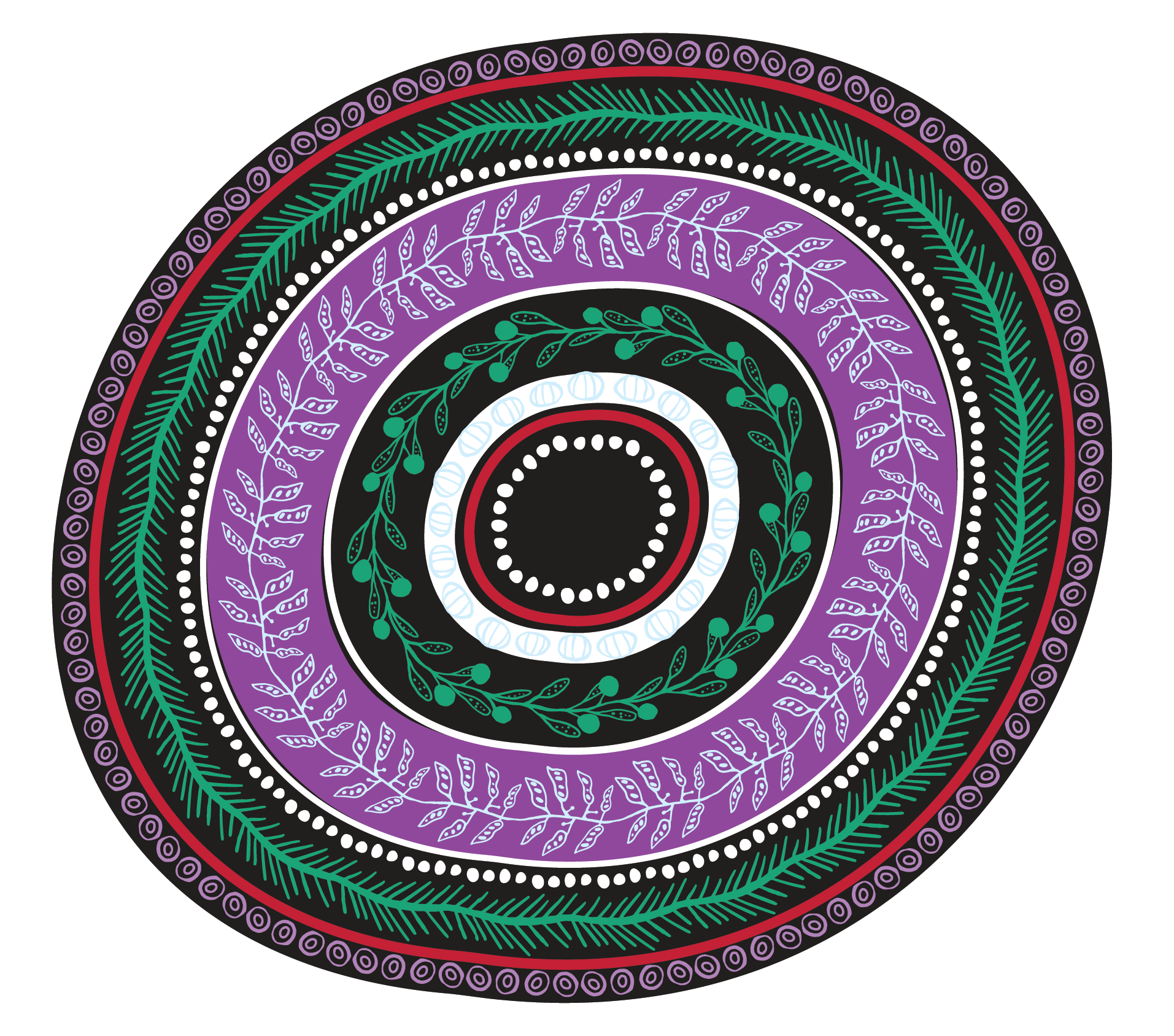 This symbol represents Dreamtime Tuka and is the centre and heart of the artwork. It also features on all of our packaging.